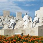 石头材质泰山花岗岩,校训书法文字由欧阳中石题写。